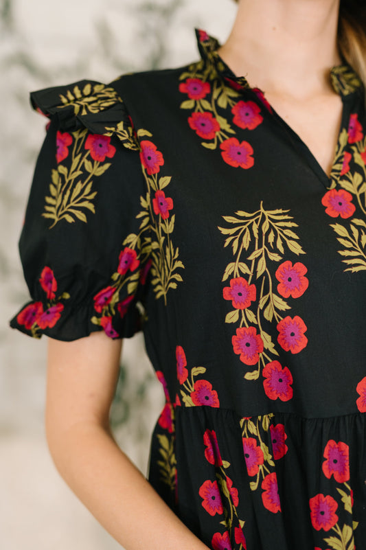 Quiet Life Notch Neck Tiered Dress in Black