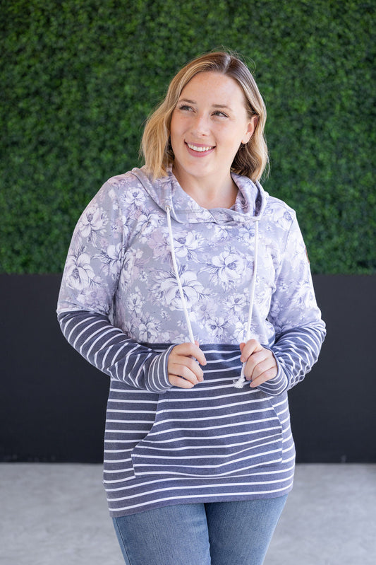IN STOCK Hailey Pullover Hoodie - Vintage Grey Floral and Stripes