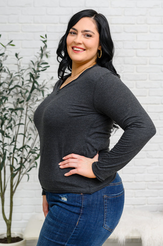 Alpine Raw Edge Long Sleeve Tee in Charcoal