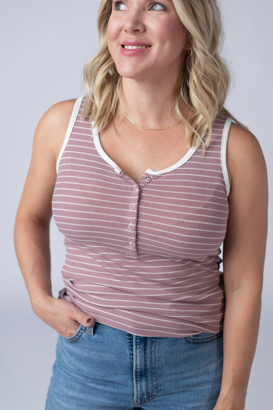 IN STOCK Lucy Striped Button Tank - Pink