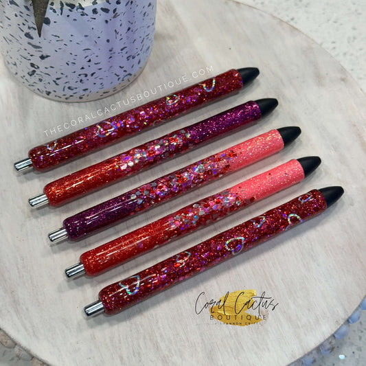 Custom Pen - Red & Purple Glitter