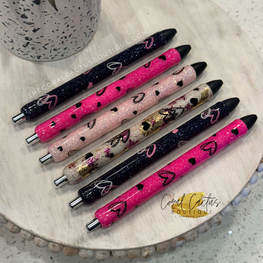 Custom Pen - Love Hearts Black