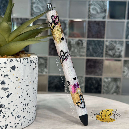 Custom Pen - Love Hearts White with Foil
