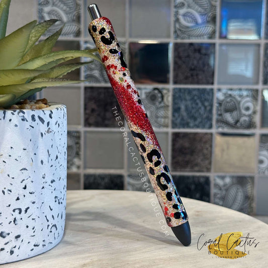 Custom Pen - Red and Gold Leopard Swirl