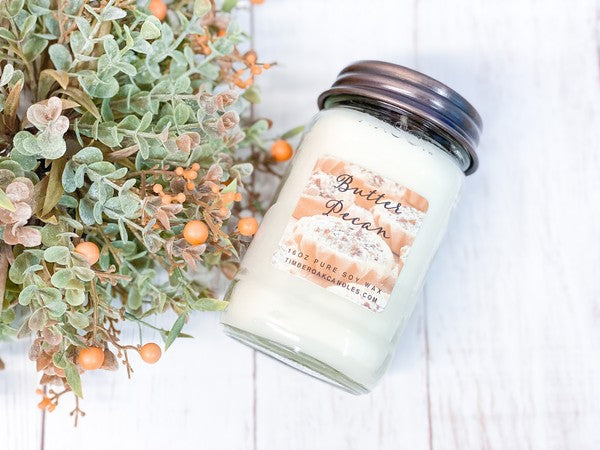 Our 16 oz mason jar soy candles add a fresh farmhouse feel to any room. This soy candle features a vintage style copper.