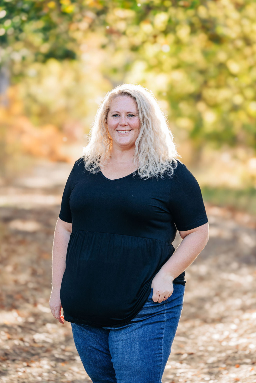 The Sarah Ruffle Short Sleeve in Black is a versatile piece that adds a touch of elegance to any outfit. This top features delicate ruffle details along the sleeves, offering a feminine and stylish look. The soft, stretchy fabric ensures all-day comfort, making it perfect for both casual and dressy occasions.