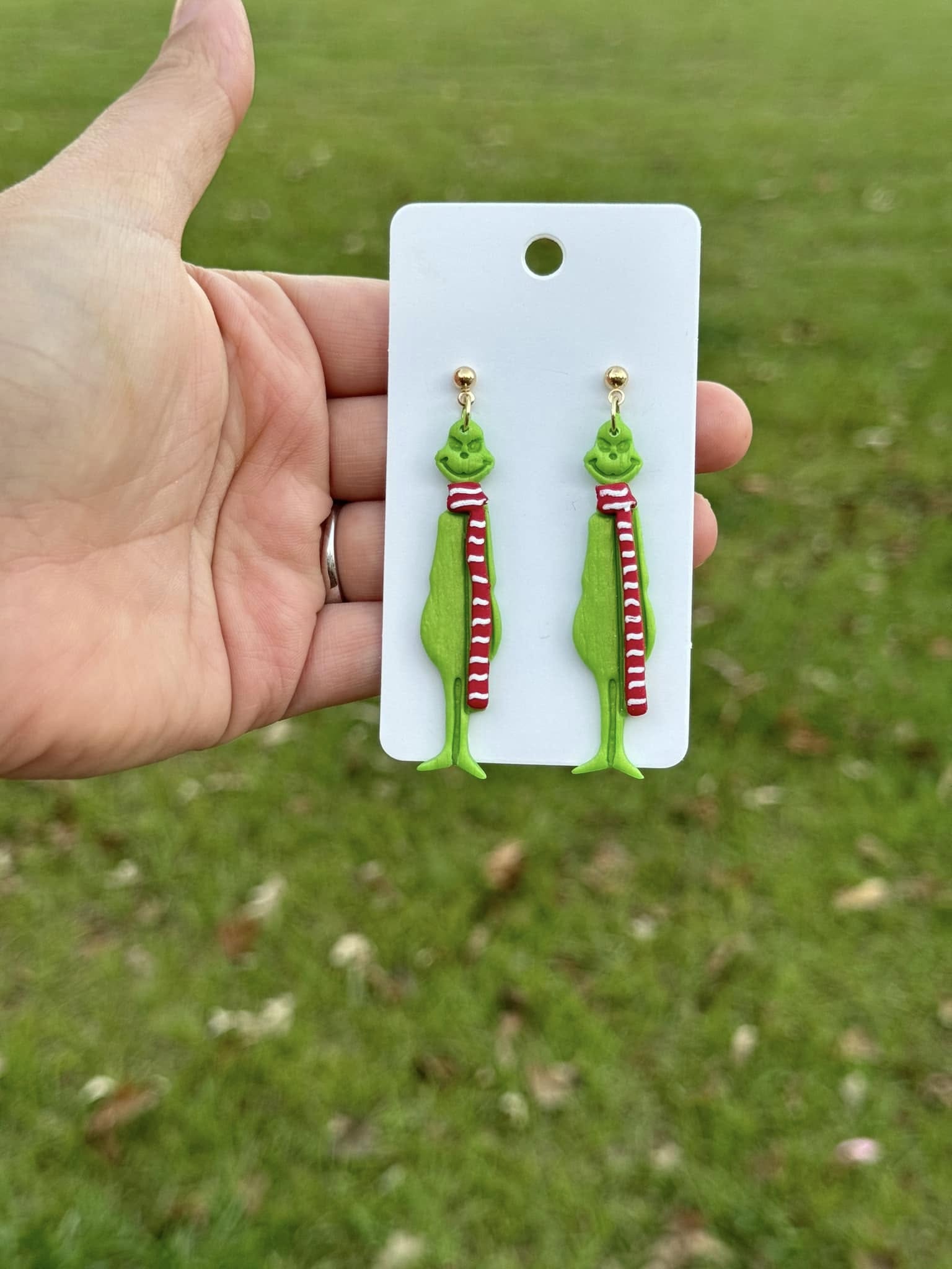 Mr Mean Christmas Dangle Clay Handmade Earrings