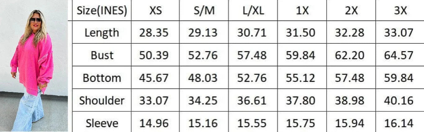 We spared no attention to detail in our sweatshirt! This forever timeless pullover is a slouchy, relaxed fit with exposed seaming, cute split cuff hem and ribbed trim detail! Has super soft "sweatshirt" feel on the inside!