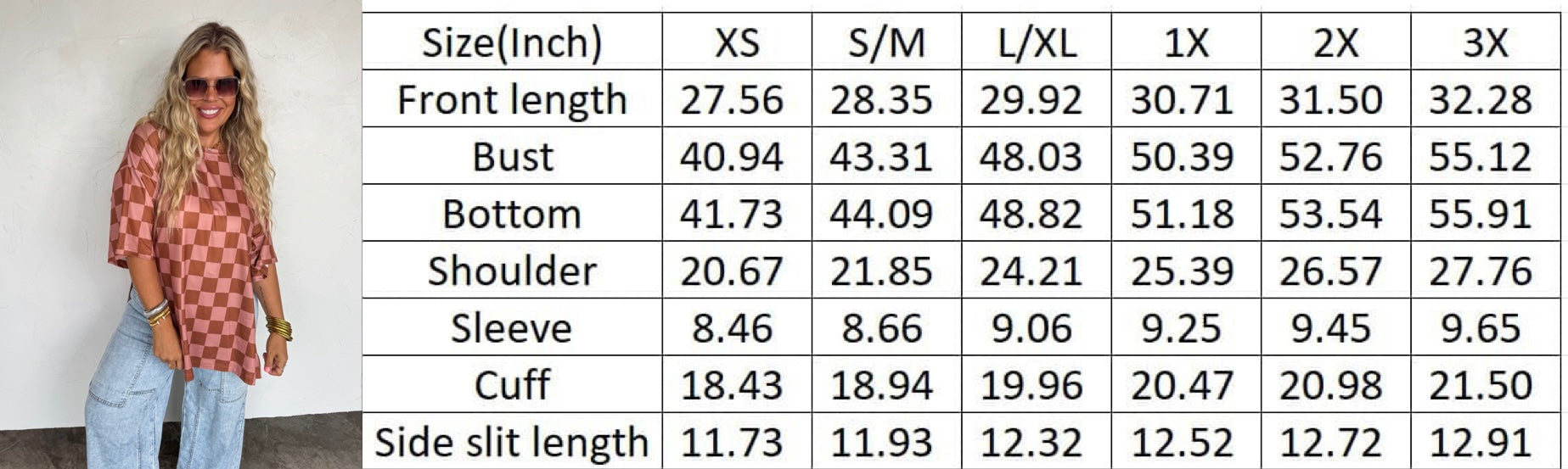 Cloud soft and so so stretchy! This bold checker top features an oversized fit with side slits. Matches perfectly with our bold block checker pants. Wear it as a set or alone with leggings or biker shorts! The perfect way to add a "pop" to any outfit!