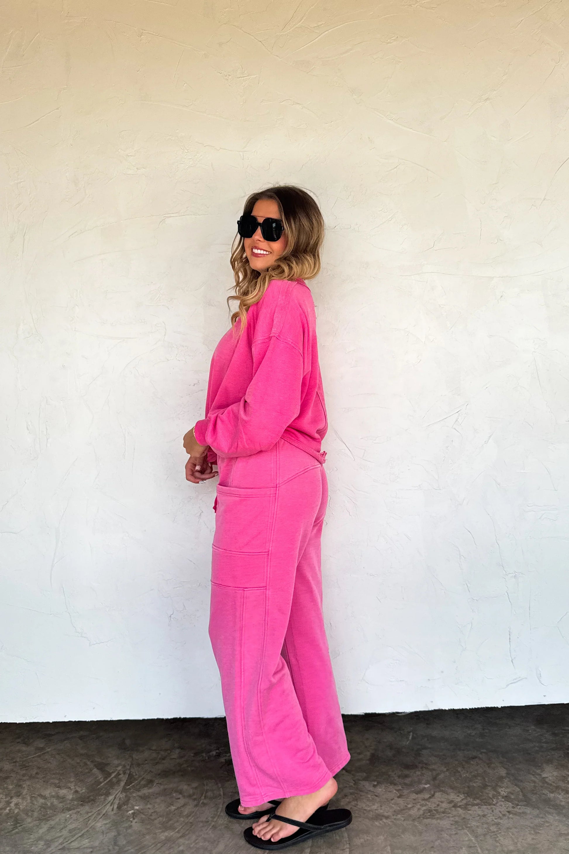 This pullover features a relaxed fit with dropped shoulders and a wide V neckline for a laid-back, easygoing look. Made from soft washed sweatshirt/terry fabric, it has visible seam details and a slightly oversized silhouette for added comfort and style. The hemline hits just below the waist, making it perfect for tucking or wearing loose.