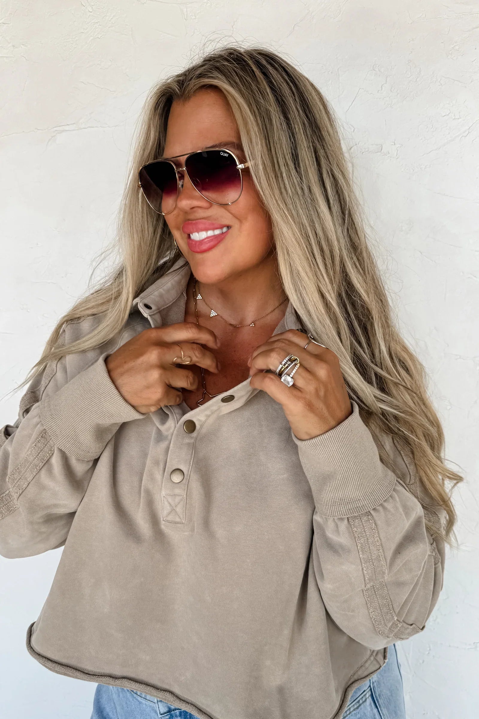 We spared no attention to detail in this raw hem/semi crop pullover! Such a relaxed, trendy look! Has a slouchy fit, vintage wash, exposed seaming and ribbed cuffs. Has super soft terry "sweatshirt" feel on the inside!