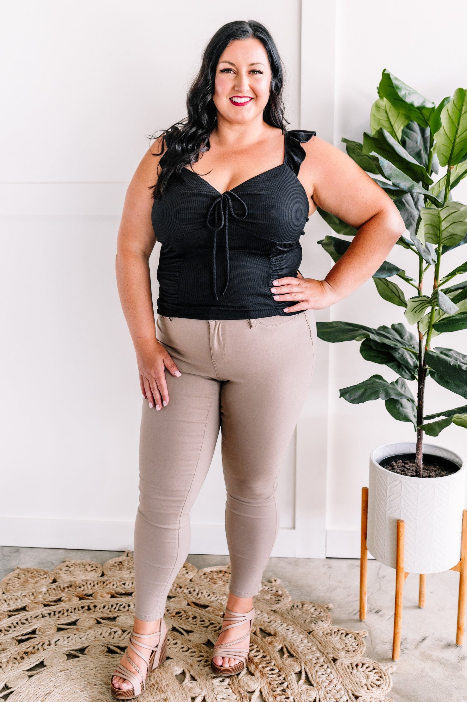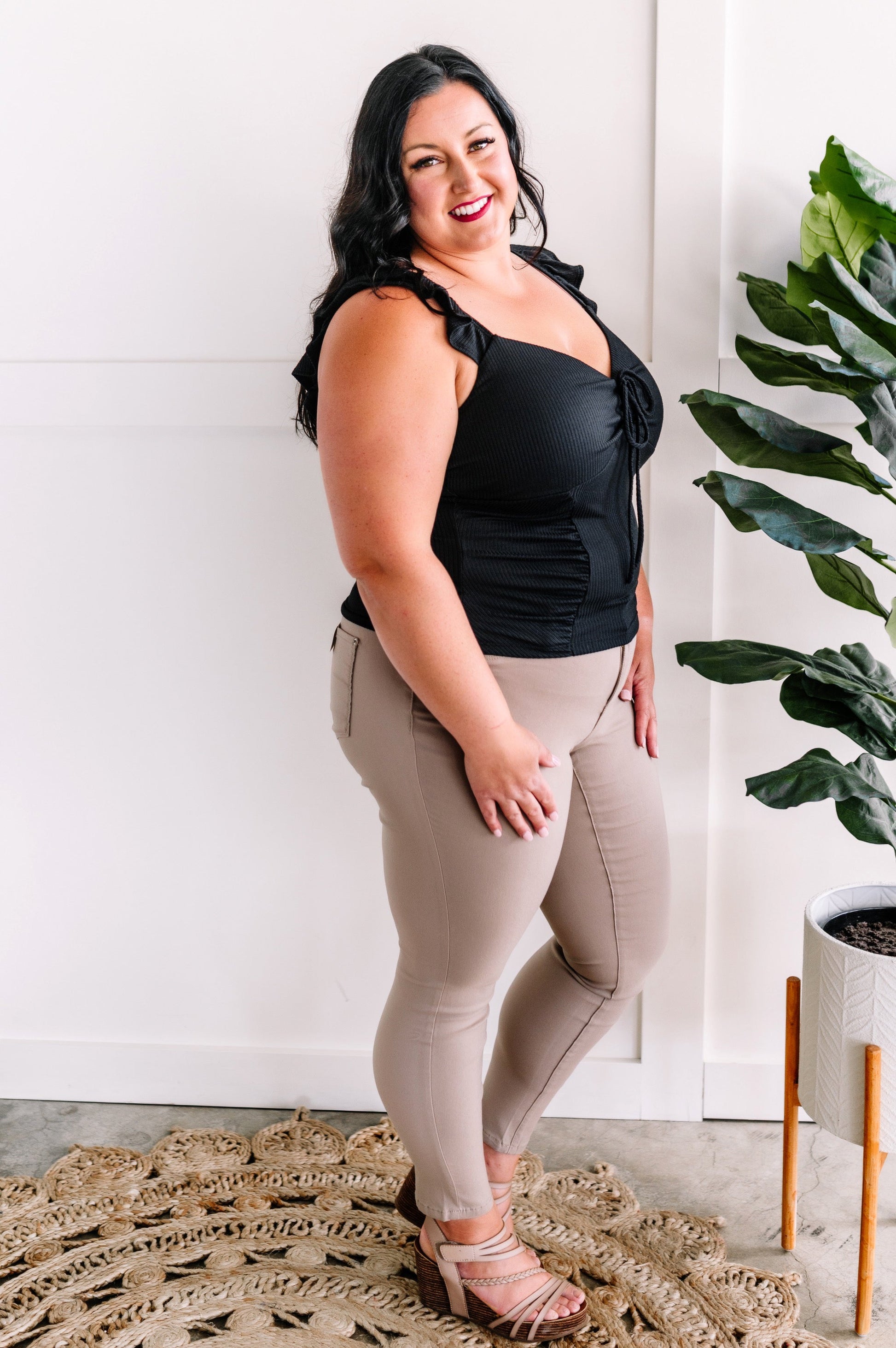 Sweetheart Neckline Flutter Sleeve Top In Smokin' Black