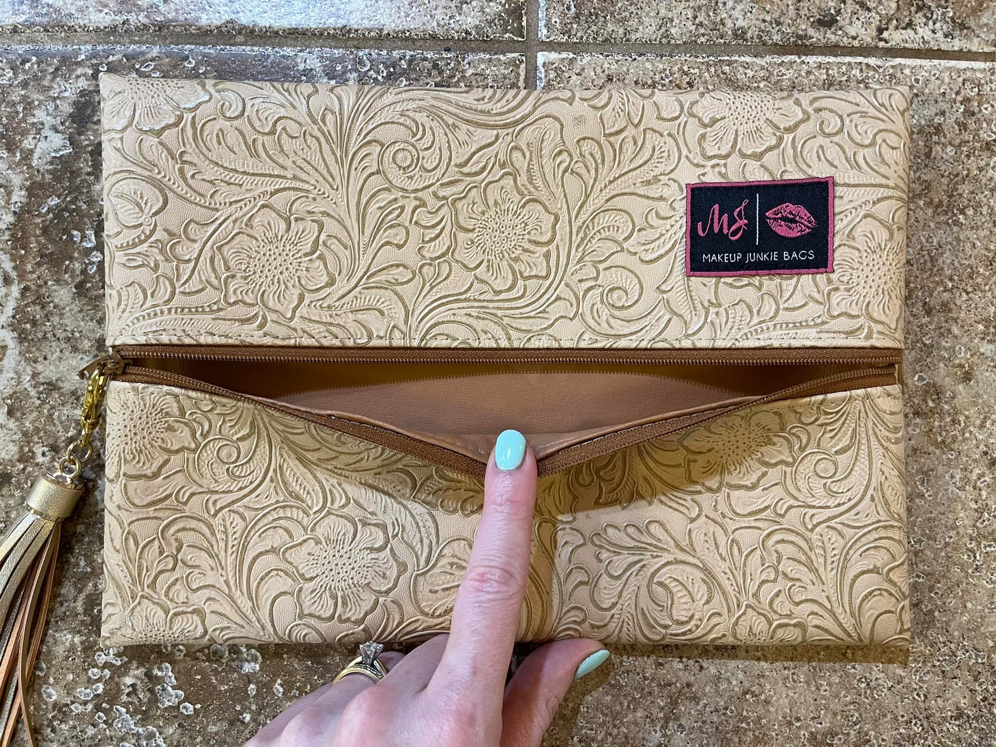 Tan Tooled Turnkey Junkie Bag